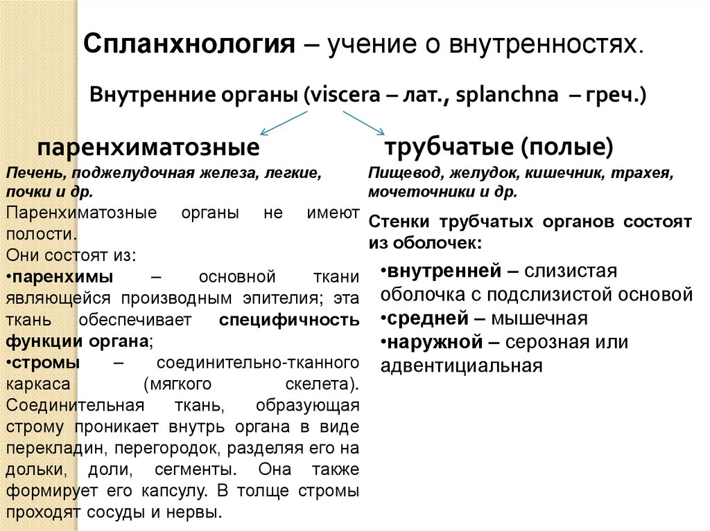 Внутренние органы (viscera – лат., splanchna – греч.)