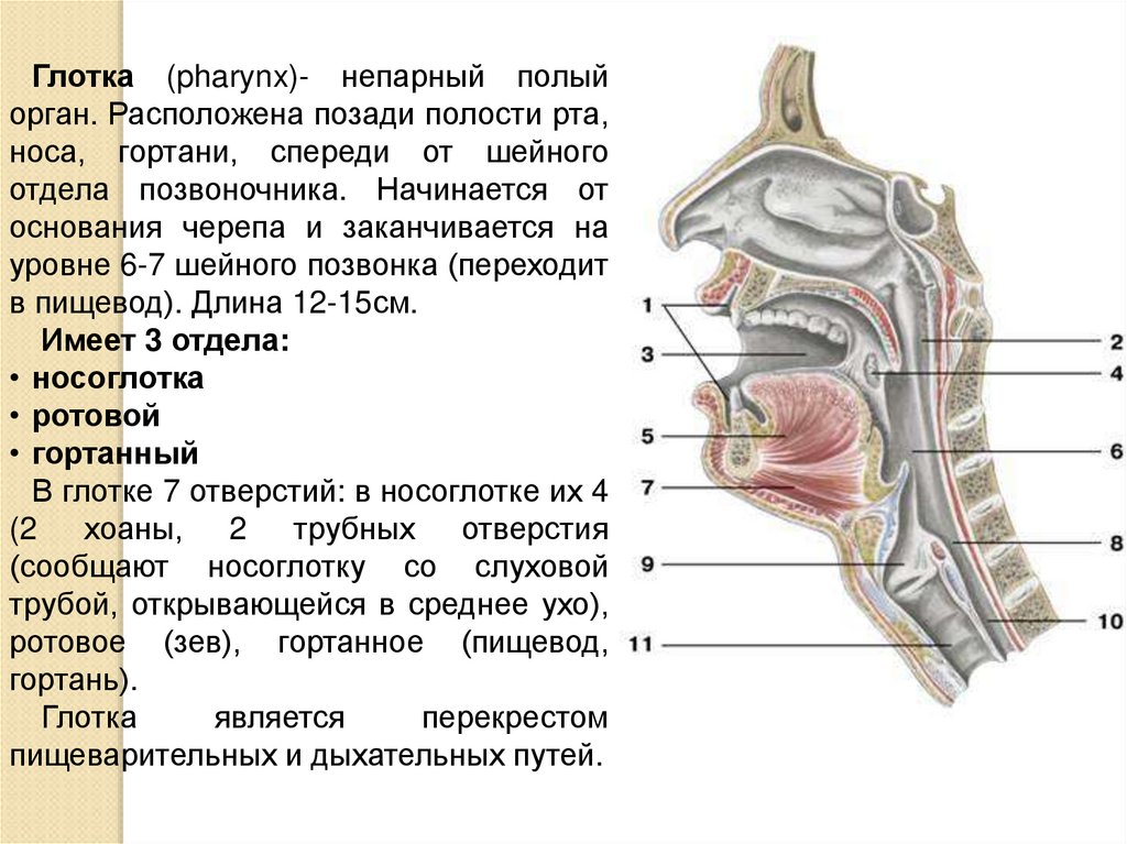 обработка) пищи. В глотке происходит перекрест пищеварительных и