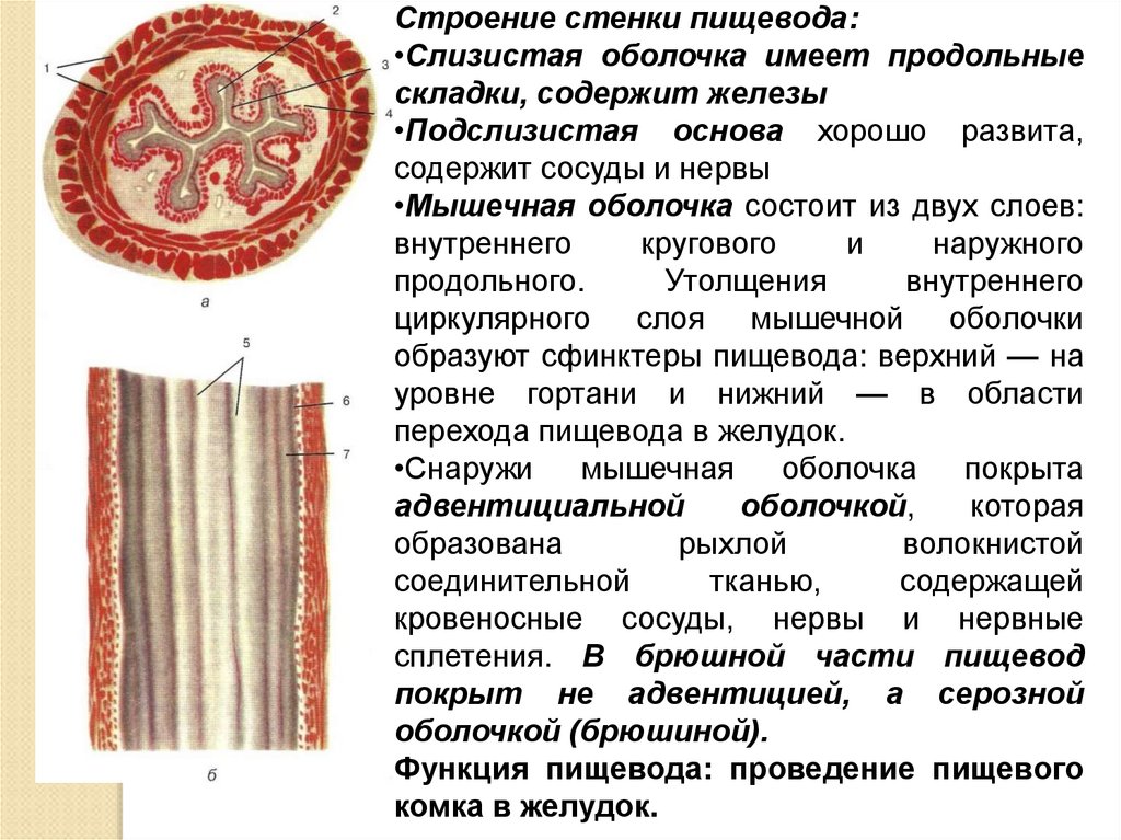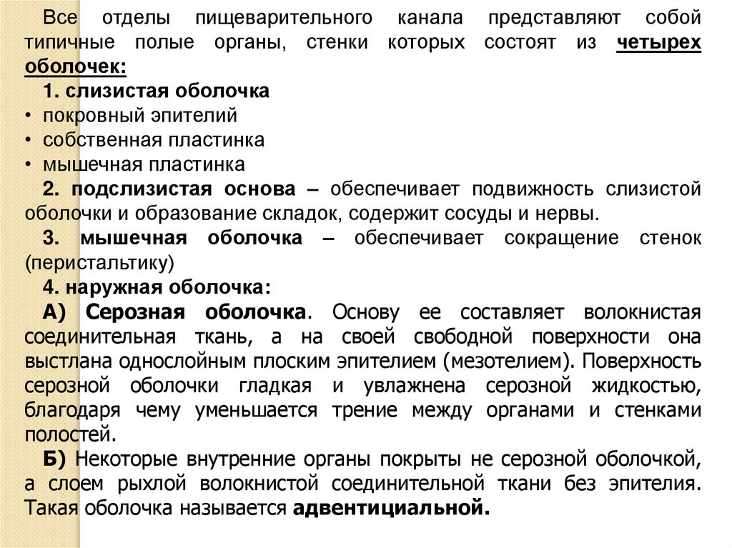 Все отделы пищеварительного канала представляют собойтипичные полые органы, стенки которых состоят из четырех