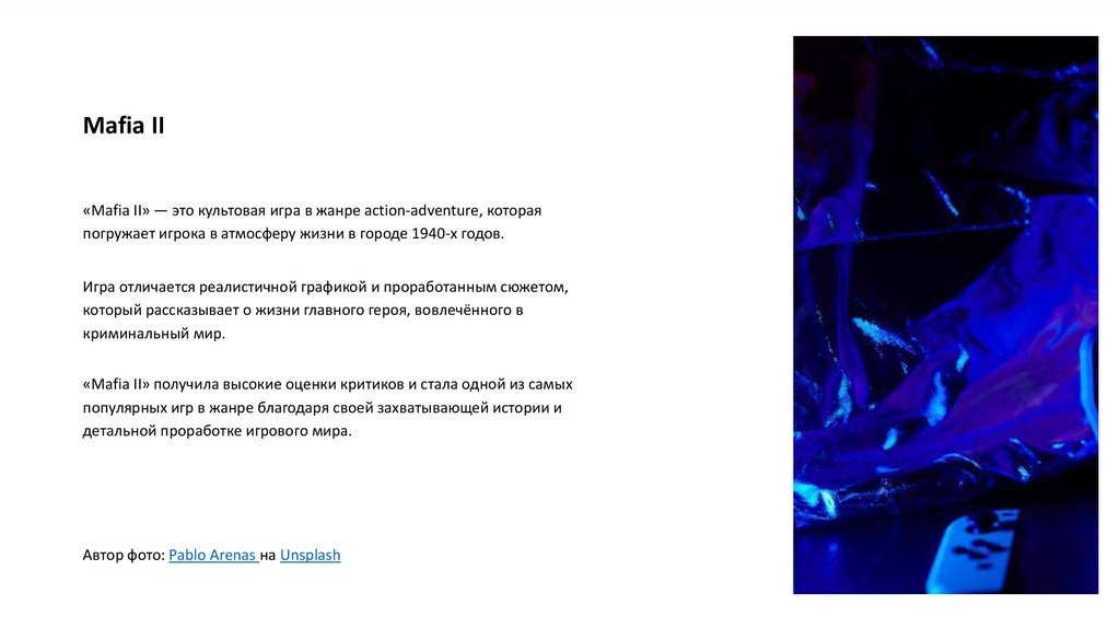Mafia II«Mafia II» — это культовая игра в жанре action-adventure, которая