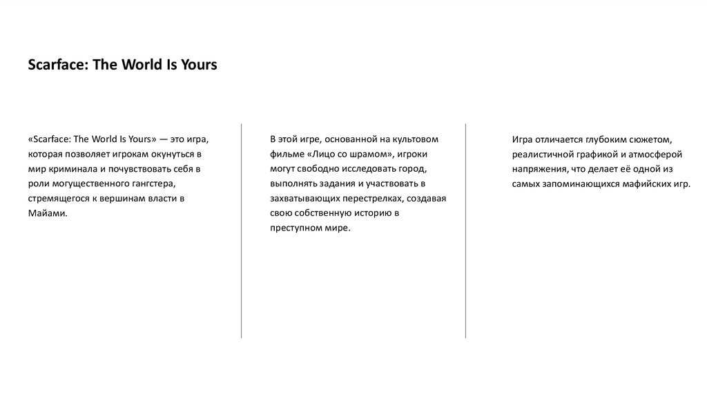 Топ 10 мафийских игрВ данной презентации мы рассмотрим десять выдающихся игр,