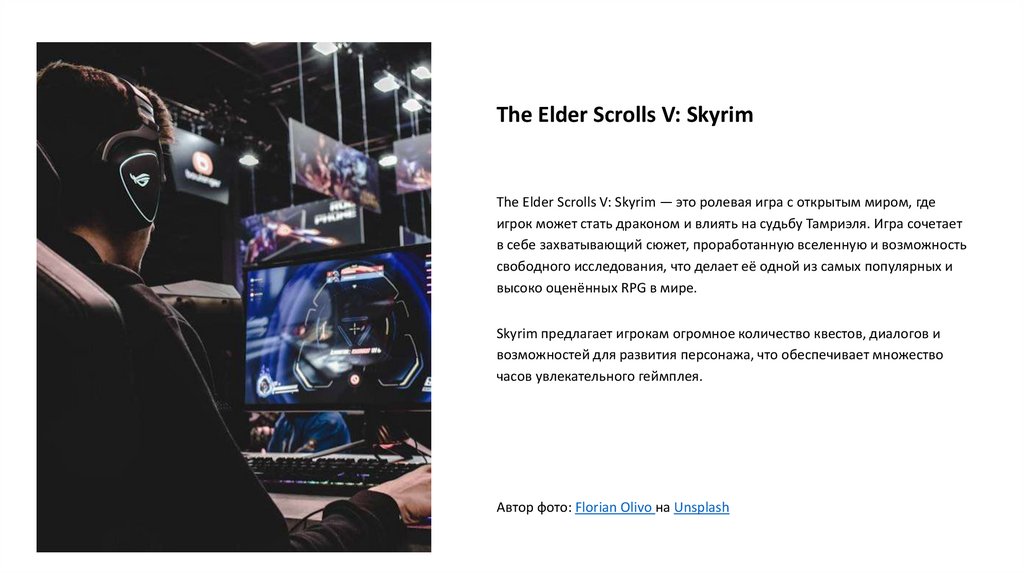 The Elder Scrolls V: SkyrimThe Elder Scrolls V: Skyrim — это ролевая игра с открытым миром, где