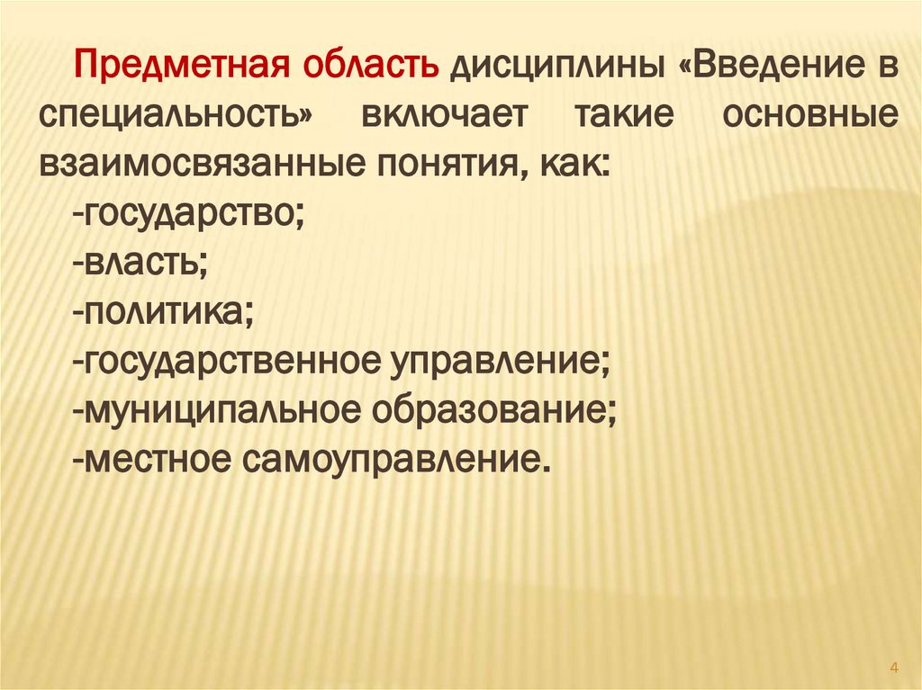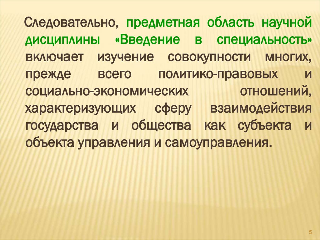 Следовательно, предметная область научнойдисциплины «Введение в специальность»