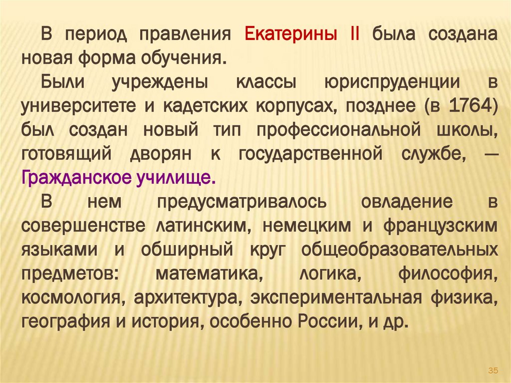 В период правления Екатерины II была созданановая форма обучения.