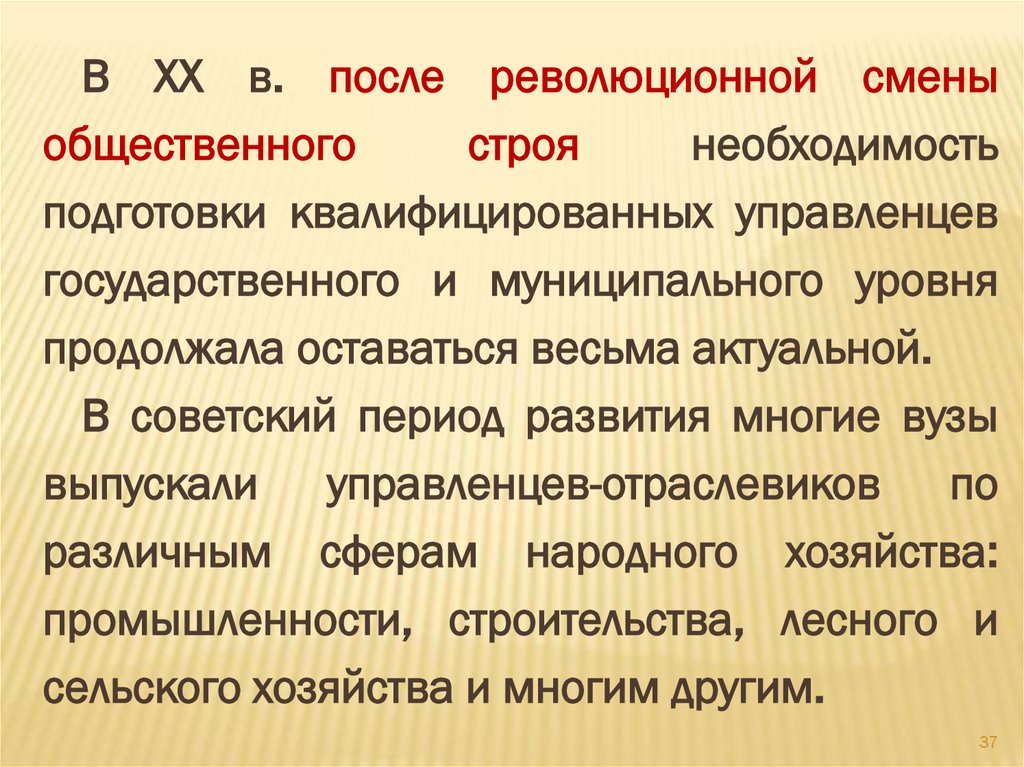 В XX в. после революционной сменыобщественного
