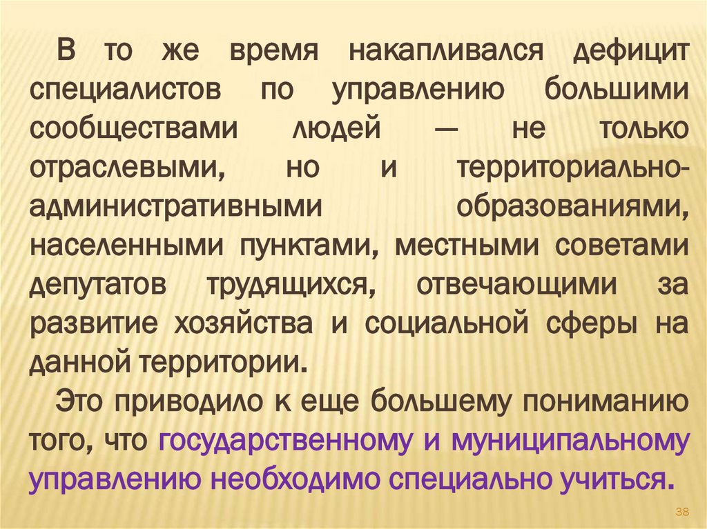 В то же время накапливался дефицитспециалистов по управлению большими