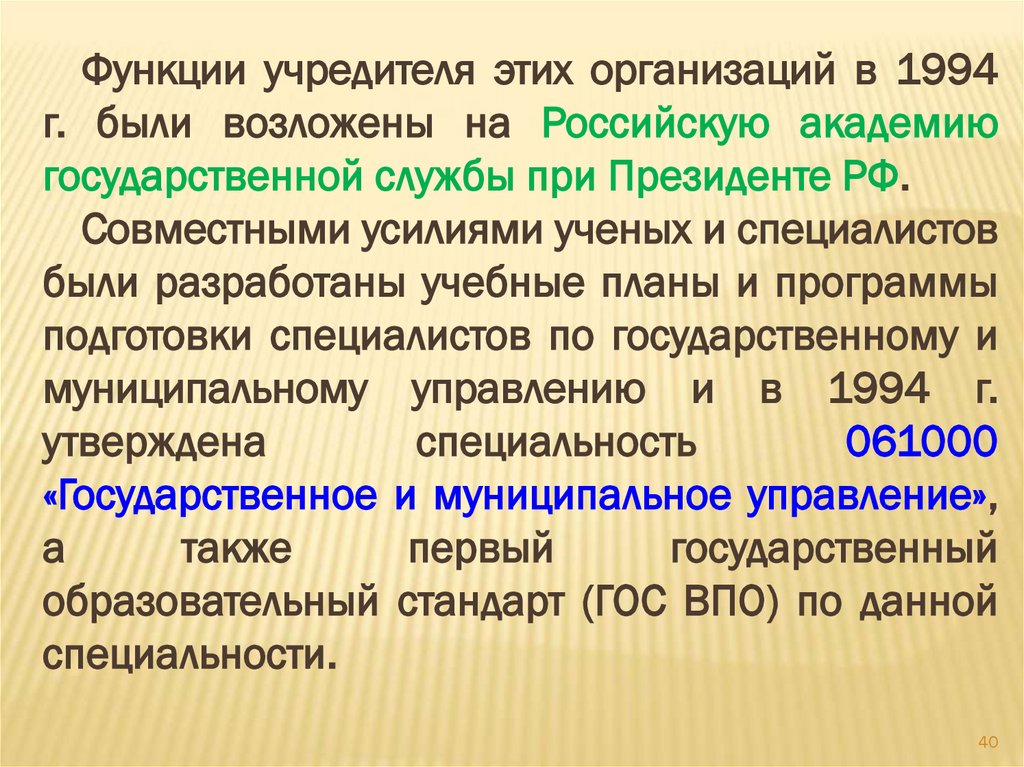 муниципальному управлению и в 1994 г.