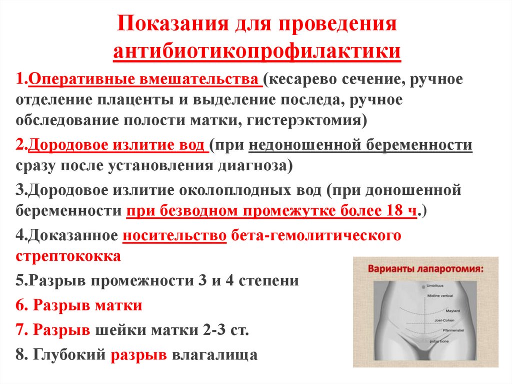 Доказано:• Одна доза антибиотика широкого спектра действия,