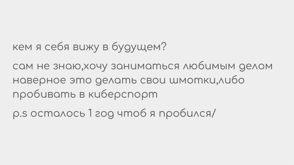 кем я себя вижу в будущем?сам не знаю,хочу заниматься любимым делом