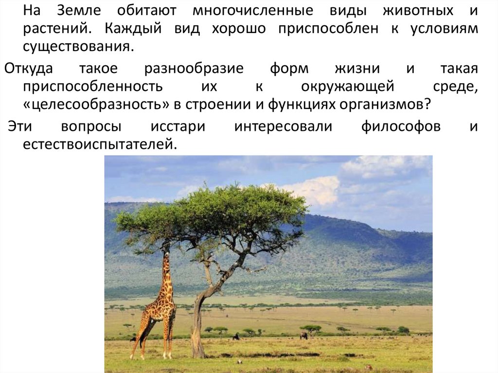 На Земле обитают многочисленные виды животных ирастений. Каждый вид хорошо приспособлен к условиям