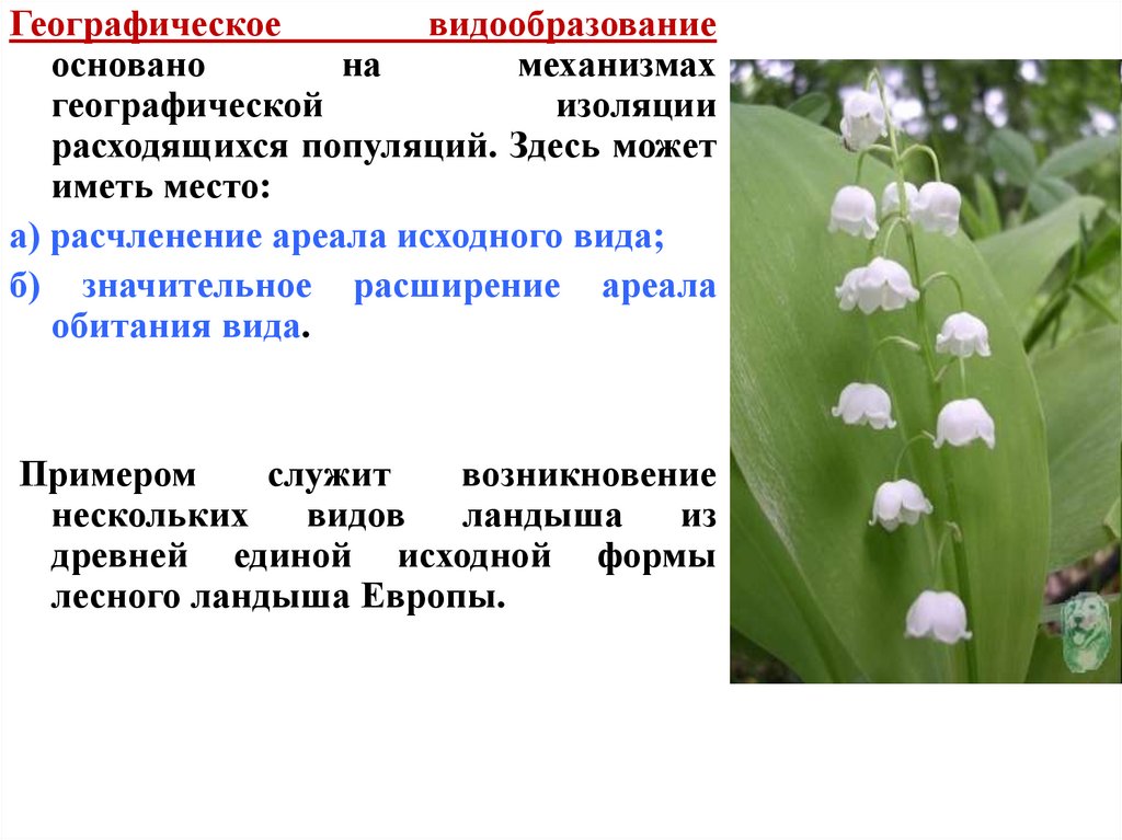 Таким образом, в основе географического видообразованиялежат различные формы пространственной географической