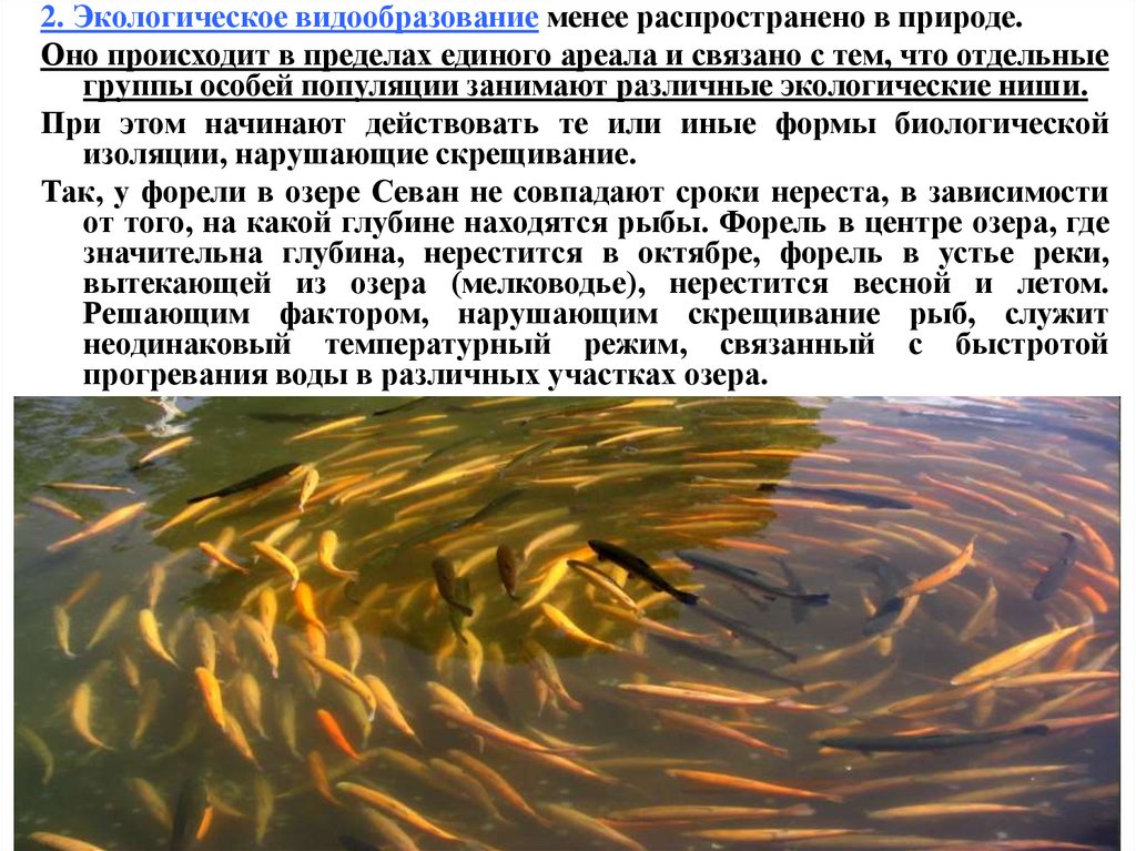 Так, у форели в озере Севан не совпадают сроки нереста, в зависимости