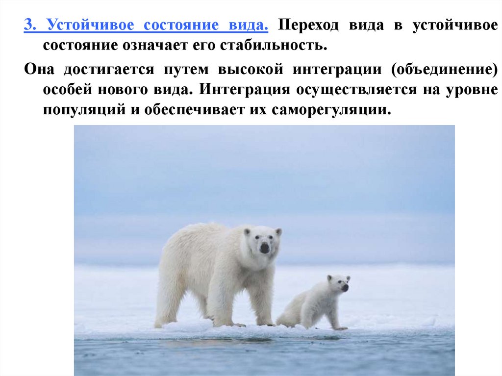 3. Устойчивое состояние вида. Переход вида в устойчивоесостояние означает его стабильность.