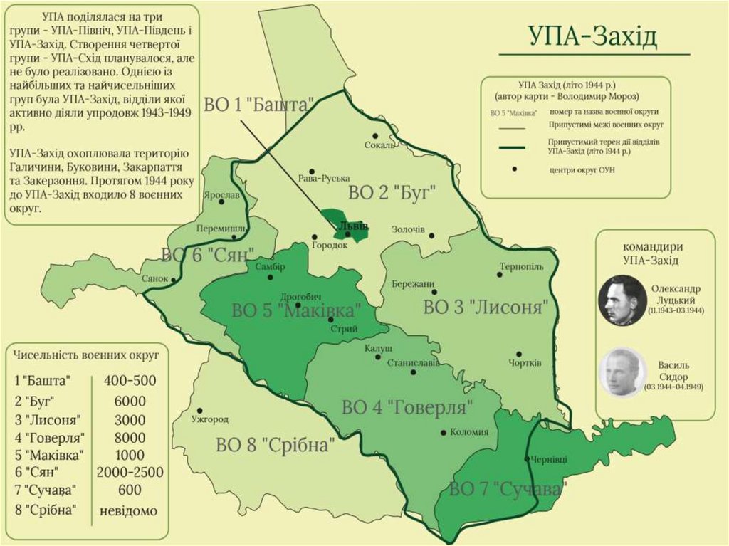 13. Поділ УПА на групи відбувся у грудні 1943р. Територіально УПА ділилася на 4 частини: