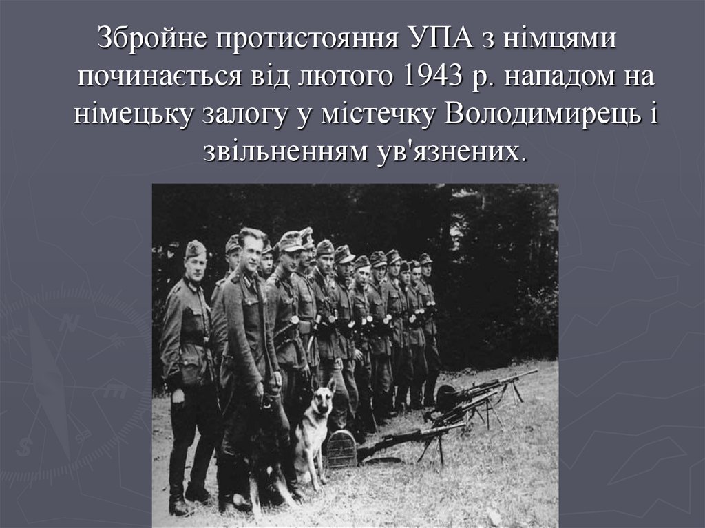 Збройне протистояння УПА з німцямипочинається від лютого 1943 р. нападом на