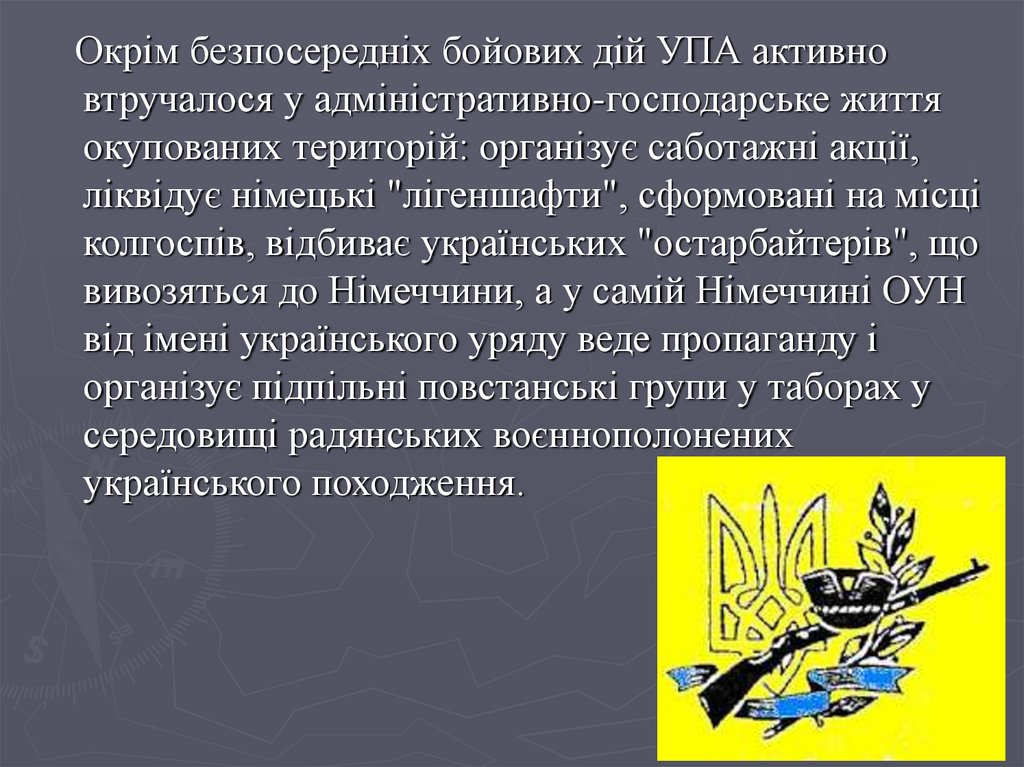 Окрім безпосередніх бойових дій УПА активновтручалося у адміністративно-господарське життя