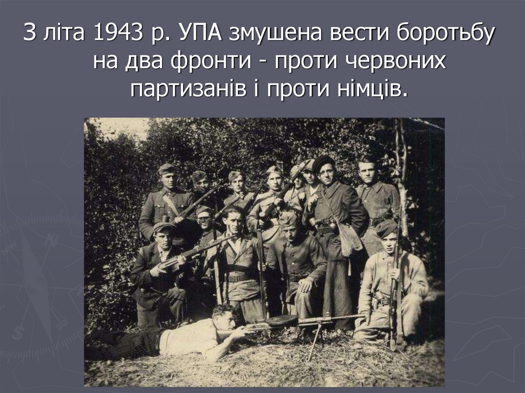 З літа 1943 р. УПА змушена вести боротьбуна два фронти - проти червоних