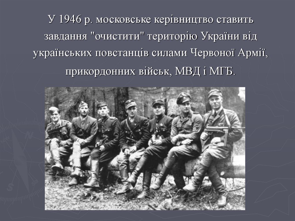 У 1946 р. московське керівництво ставитьзавдання "очистити" територію України від