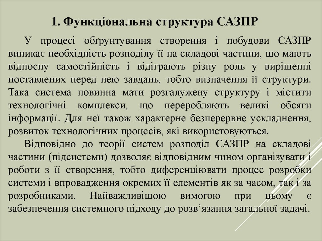 1. Функціональна структура САЗПРУ процесі обґрунтування створення і побудови САЗПР