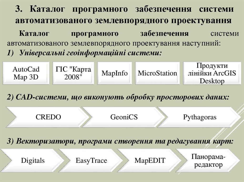 3. Каталог програмного забезпечення системиавтоматизованого землевпорядного проектування