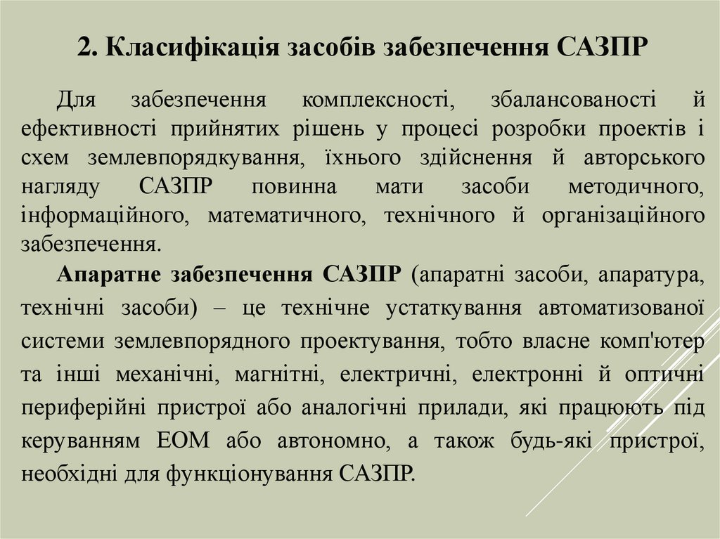 2. Класифікація засобів забезпечення САЗПРДля забезпечення комплексності, збалансованості й