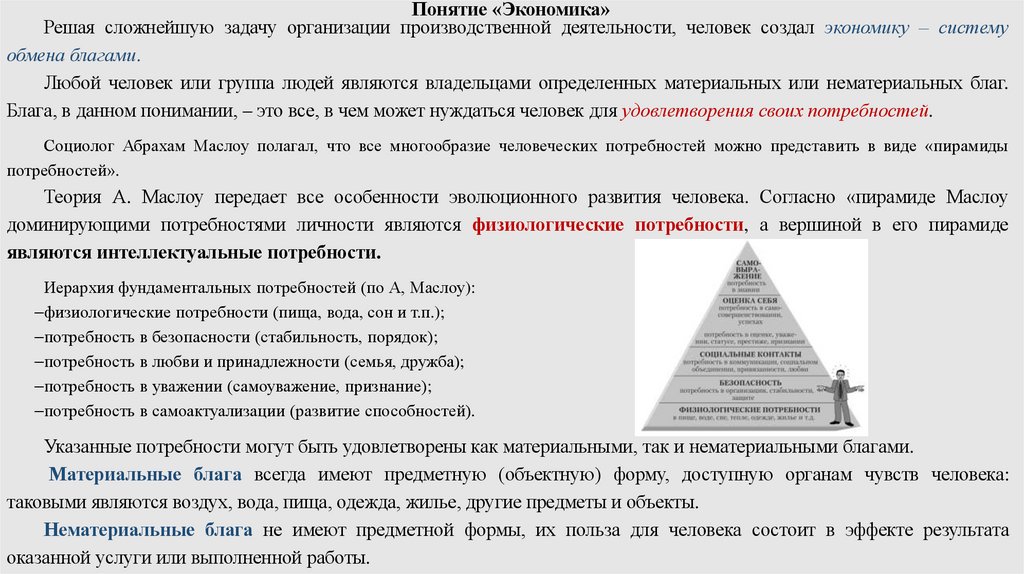 Указанные потребности могут быть удовлетворены как материальными, так и нематериальными благами.