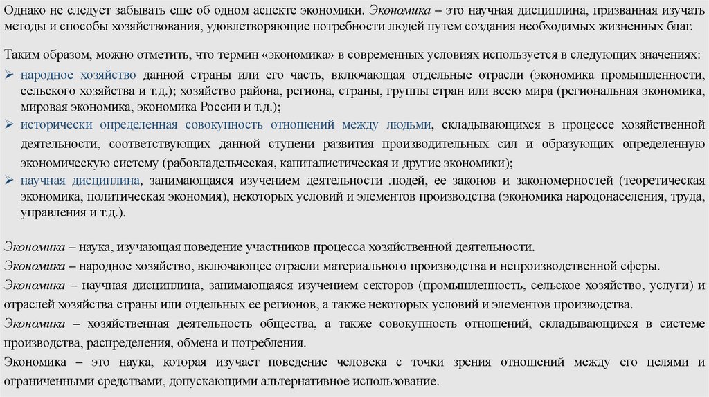 Таким образом, можно отметить, что термин «экономика» в современных условиях используется в следующих значениях: