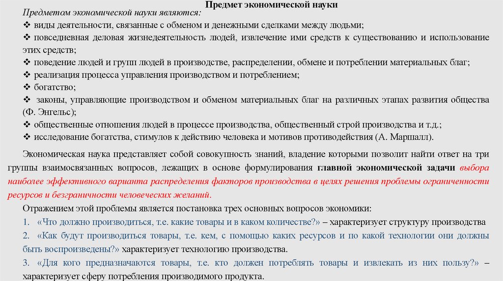 Предмет экономической науки