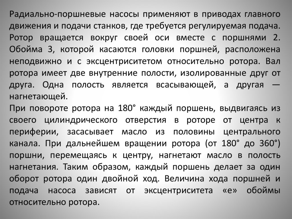 Радиально-поршневые насосы применяют в приводах главногодвижения и подачи станков, где требуется регулируемая подача.