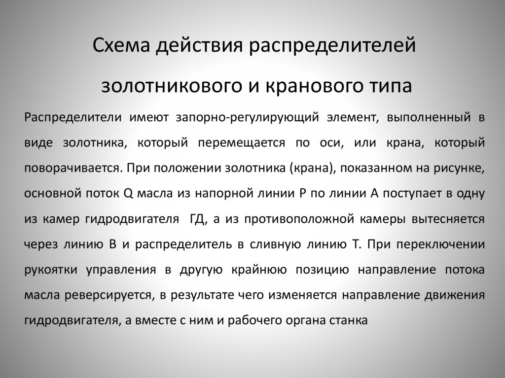 13. Схемы действия распределителей золотникового (а) и кранового (б) типов