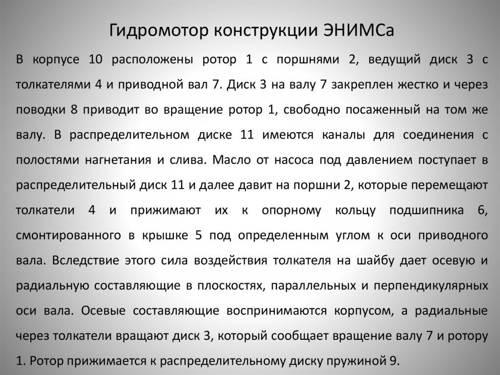 Гидромотор конструкции ЭНИМСаВ корпусе 10 расположены ротор 1 с поршнями 2, ведущий диск 3 с