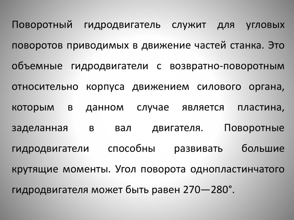 Поворотный гидродвигатель служит для угловыхповоротов приводимых в движение частей станка. Это