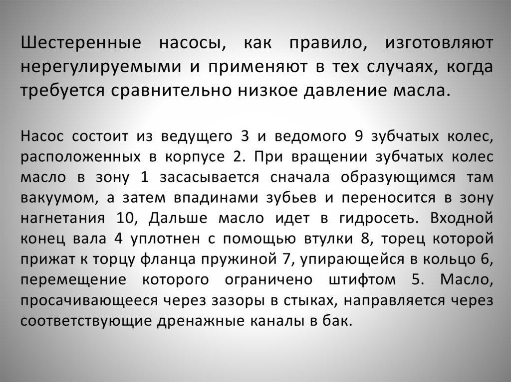 Шестеренные насосы, как правило, изготовляютнерегулируемыми и применяют в тех случаях, когда