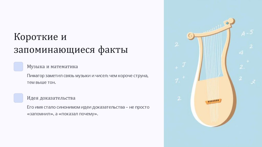 Пифагор заметил связь музыки и чисел: чем короче струна,