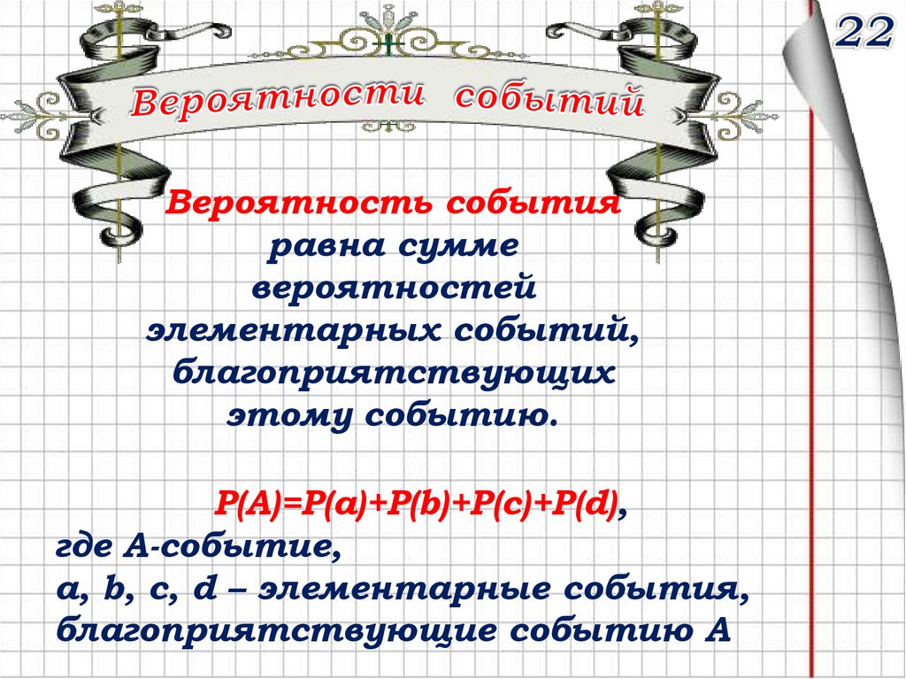 P(A)=P(a)+P(b)+P(с)+P(d),