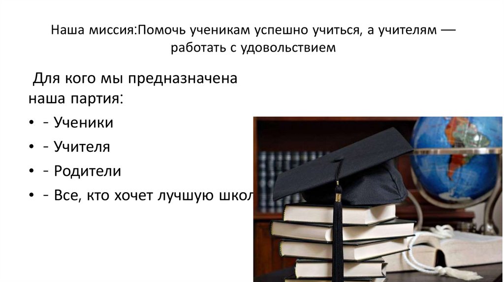 Наша миссия:Помочь ученикам успешно учиться, а учителям —работать с удовольствием