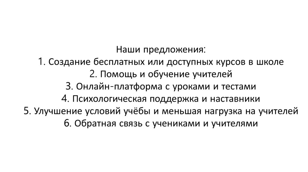 Наши предложения:1. Создание бесплатных или доступных курсов в школе