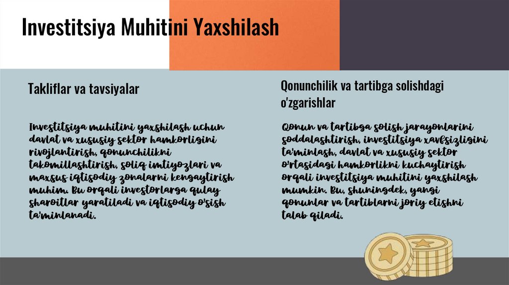 investitsiya muhitini yaxshilaydi.