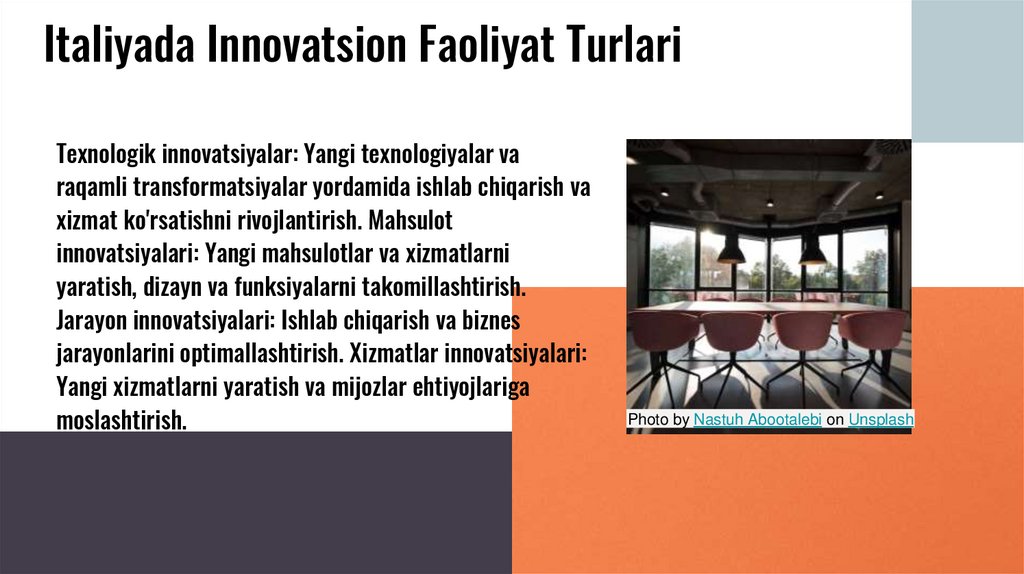 Innovatsion FaoliyatPhoto by Kevin Matos on Unsplash