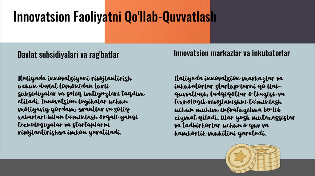 Innovatsion Faoliyatni Qo'llab-QuvvatlashDavlat subsidiyalari va rag'batlar