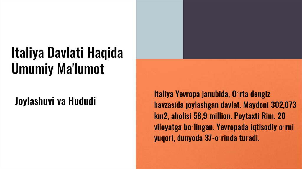Italiya Davlati HaqidaUmumiy Ma'lumot