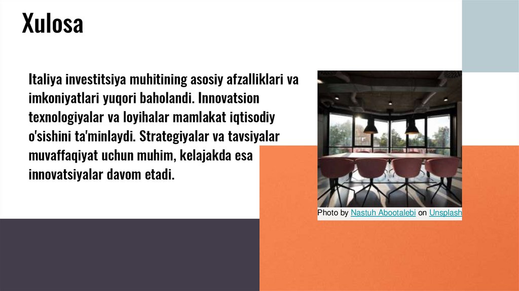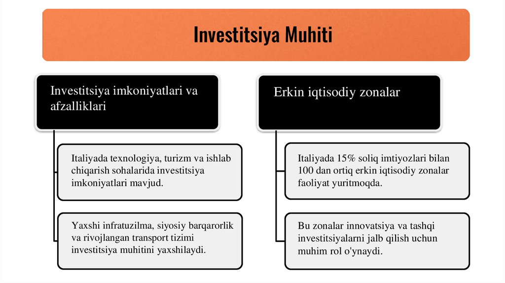 XulosaItaliya investitsiya muhitining asosiy afzalliklari va