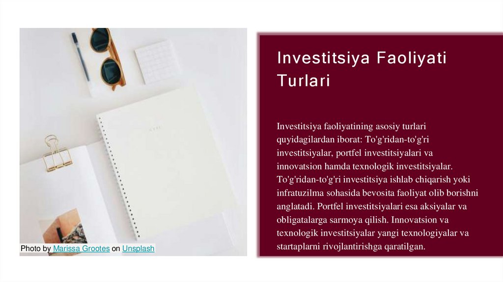 Investitsiya FaoliyatiTurlari