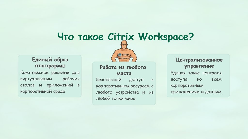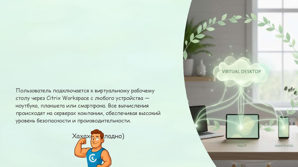 Пользователь подключается к виртуальному рабочемустолу через Citrix Workspace с любого устройства —