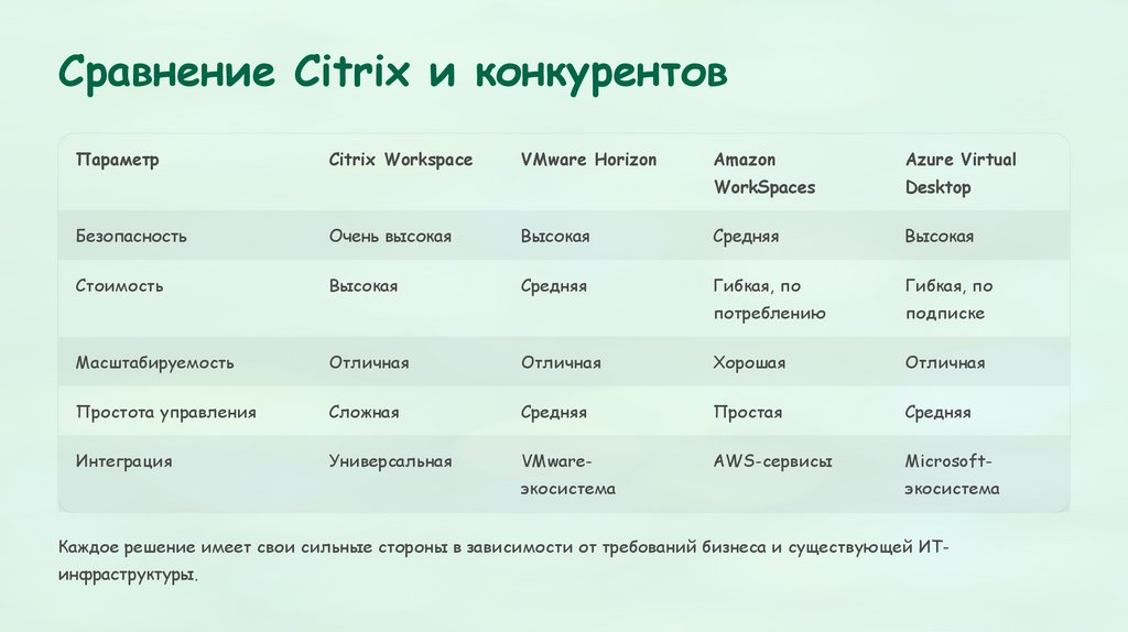Каждое решение имеет свои сильные стороны в зависимости от требований бизнеса и существующей ИТ-