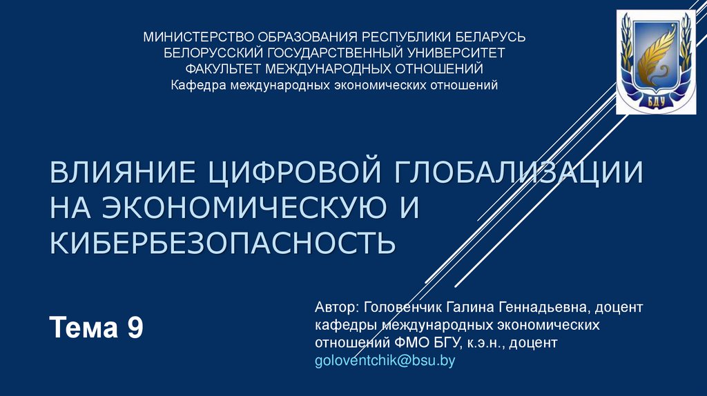 Тема 9. Влияние цифровой глобализации на экономическую и кибербезопасность