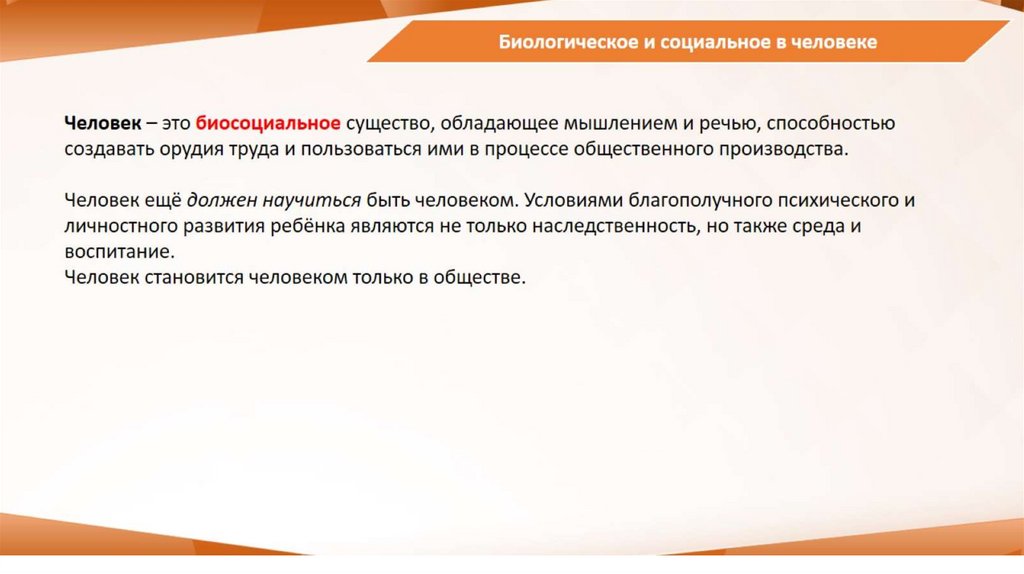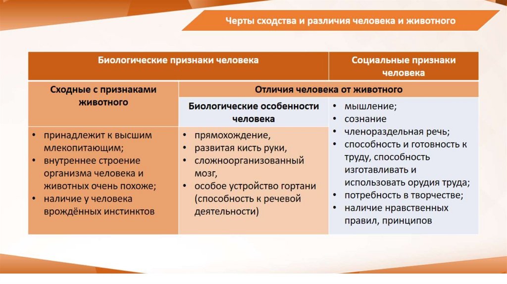 ОГЭ_1.1 Биологическое и социальное в человеке. Черты сходства и различия человека и животного