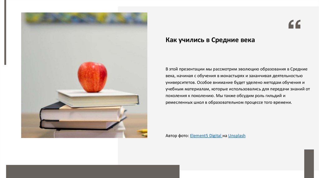 Как учились в Средние векаВ этой презентации мы рассмотрим эволюцию образования в Средние