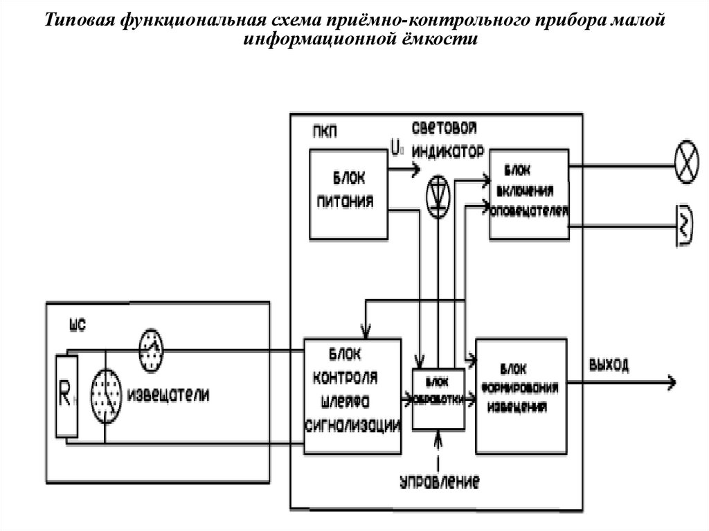 Типовая функциональная схема приёмно-контрольного прибора малойинформационной ёмкости