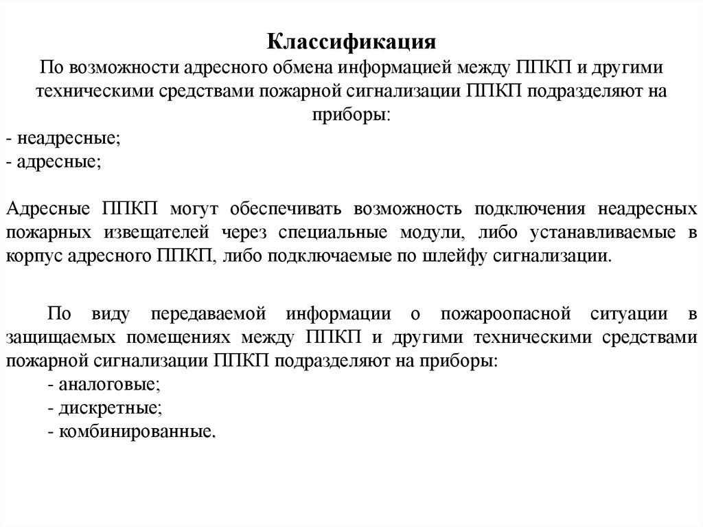 КлассификацияПо возможности адресного обмена информацией между ППКП и другими